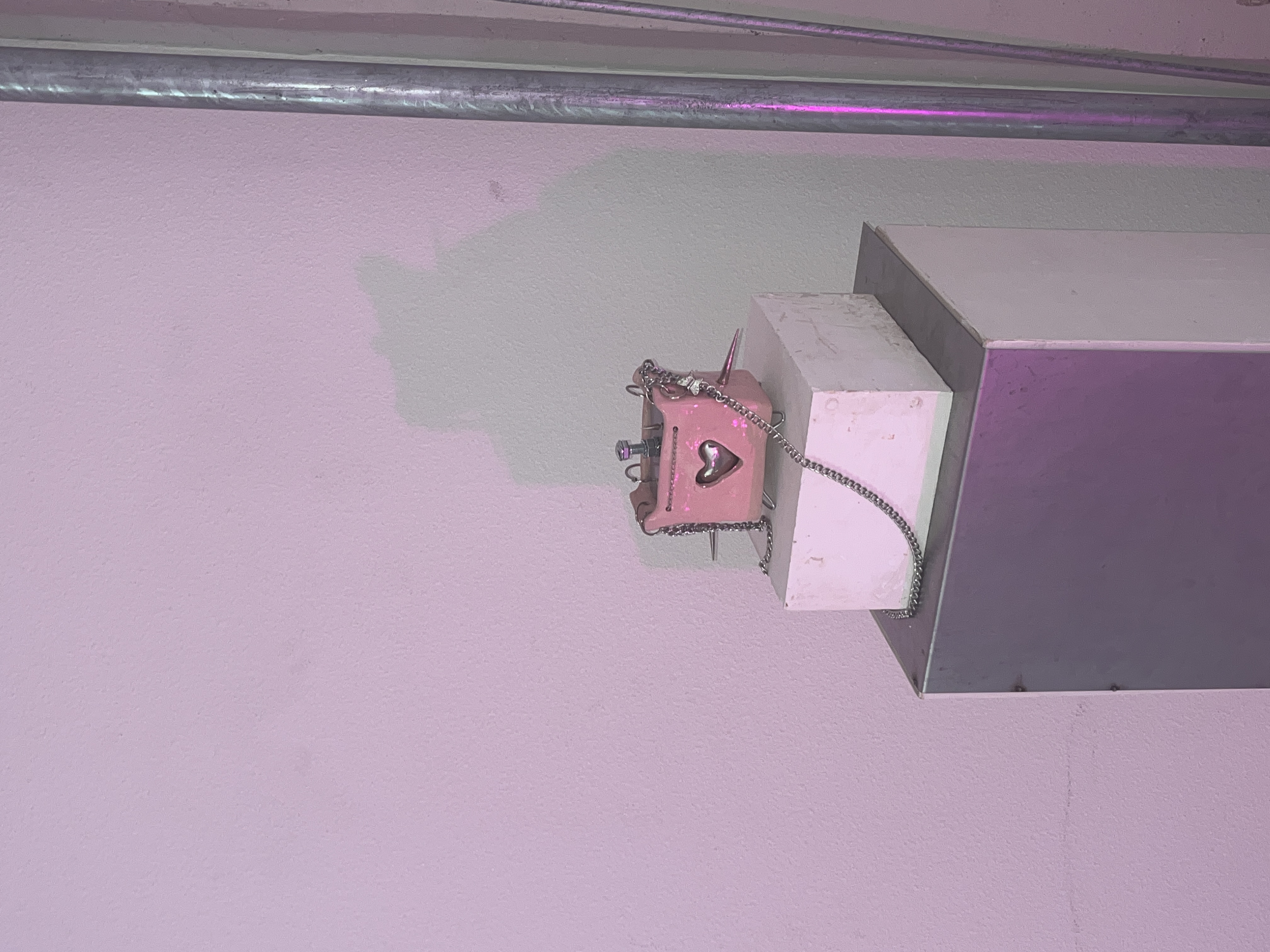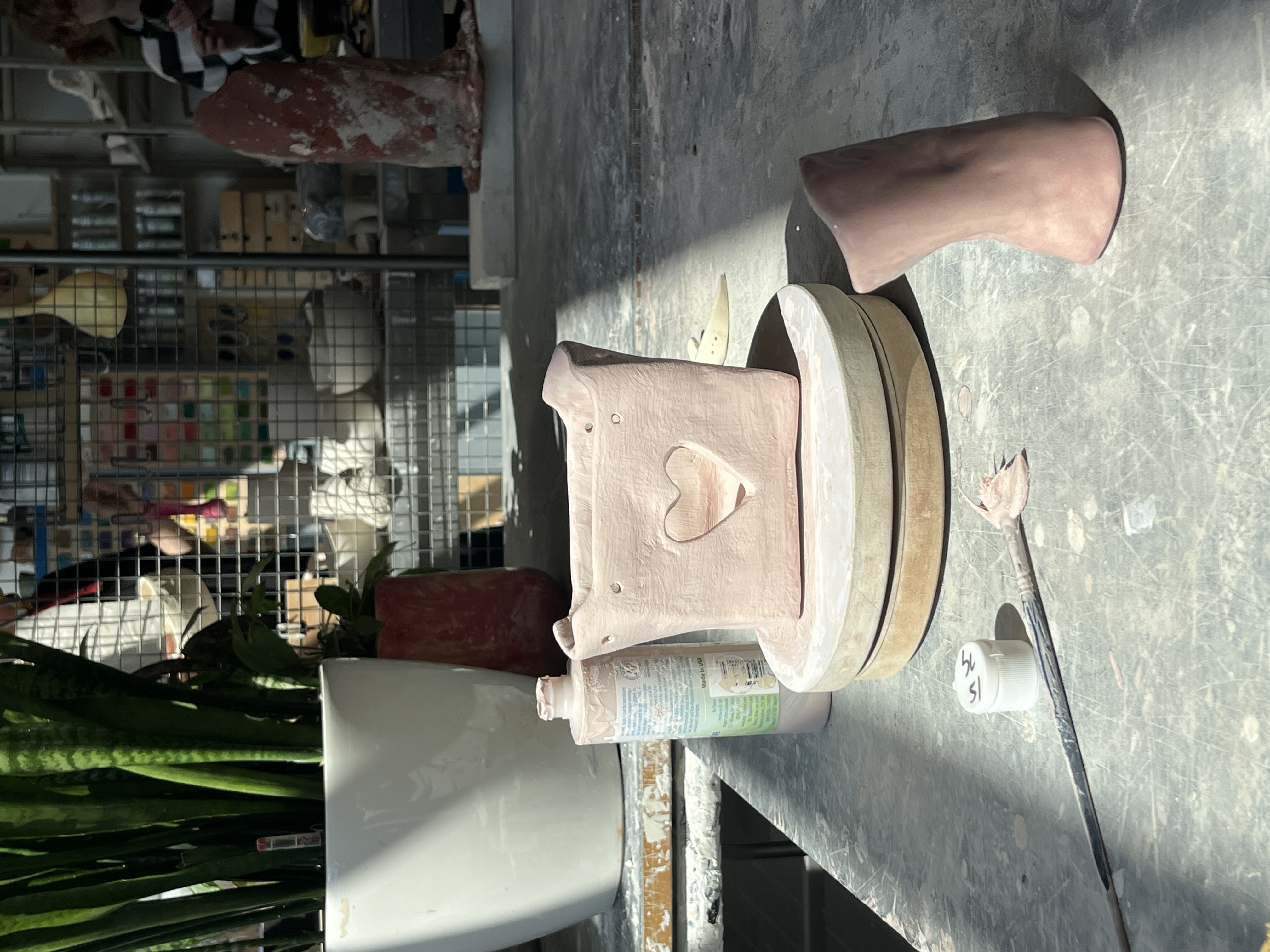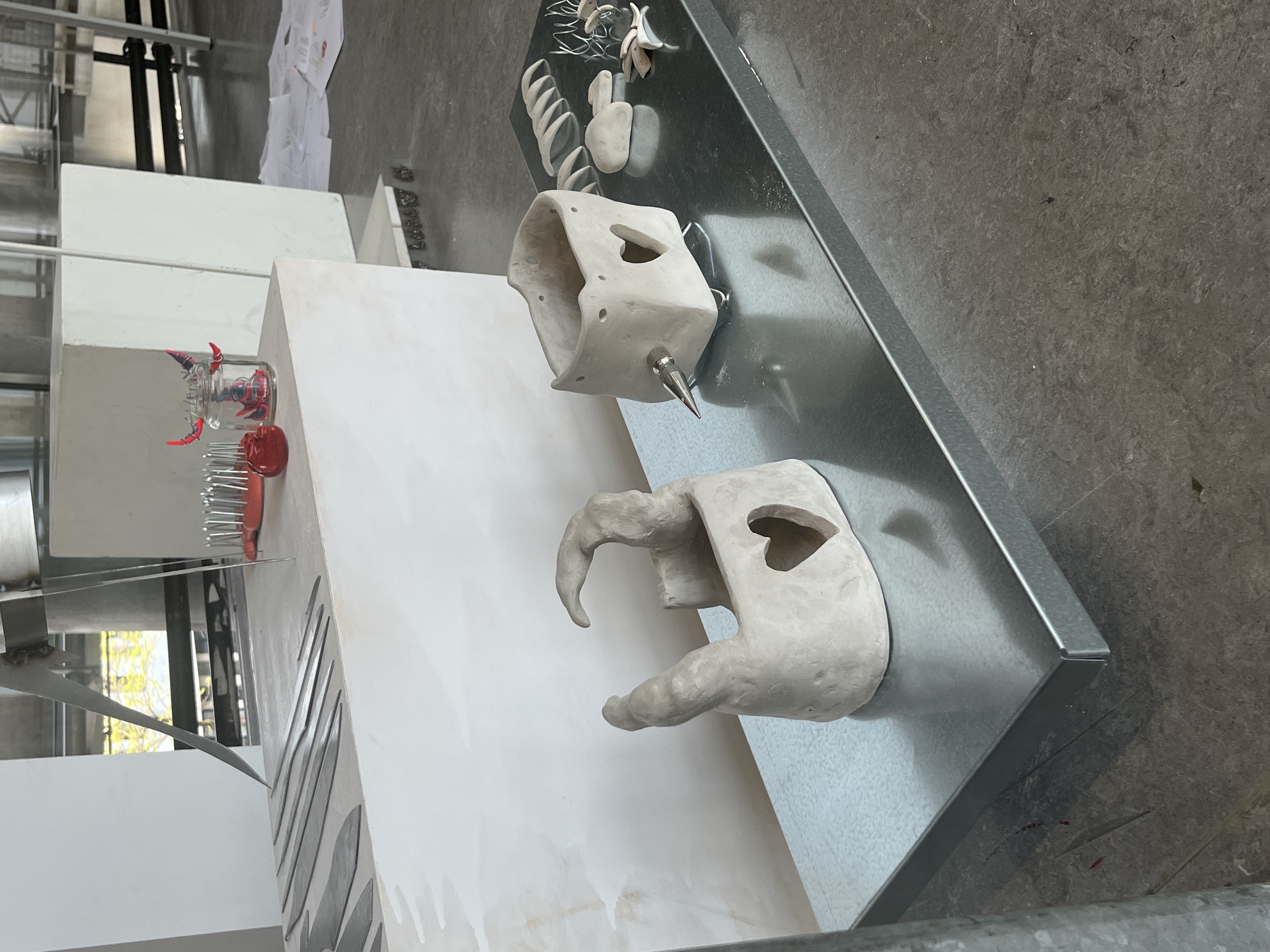 The Super-Faggot purse is made out of clay, glaze, steel and aluminum chain,